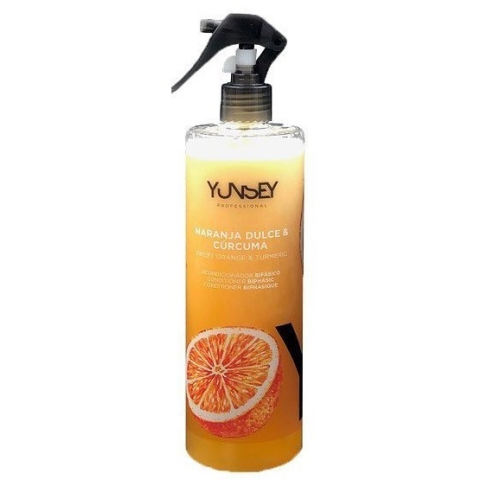 Yunsey Vigorance édes narancs és kurkuma kétfázisú kifésülőbalzsam, 500 ml - Kondicionáló és kócbontó hatású spray - Egyszerre kondicionálja és könnyen kifésülhetővé teszi a hajat anélkül, hogy zsírosítaná - A vizes fázis aktív kondicionáló összetevőket é