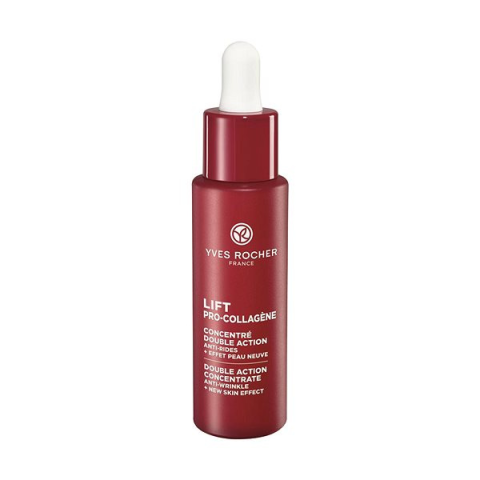 Arcszérum - nappali és éjszakai használatra, tápláló, ránctalanító, regeneráló, pórusösszehúzó, revitalizáló és simító, természetes összetevőjű, retinolos (A-vitaminos) és bakuchiolos, zsíros, normál, kombinált, száraz és érett bőrre alkalmas, 30 ml-es kiszerelésben Az YVES ROCHER kettős hatású koncentrátum arcszérum kellemes, könnyű, tejes állagával felveszi a harcot az öregedés ellen. Tiszta hatóanyagot tartalmaz, amely növeli a kollagén és a hi