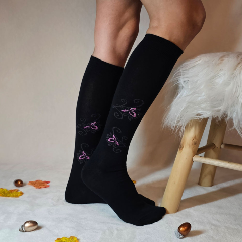 1 kép YVONNE Női térdzokni rózsaszín virág mintás 39-42