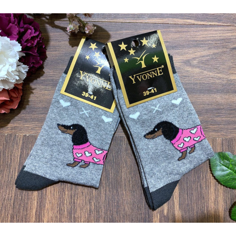 Tacskó kutyás zokni Szereted a csak neked tervezett tacskó kutyás zoknikat? A termék jellemzői : normál szárú zokni hosszú élettartamú megerősitett orr és sarok kényelmes és rugalmas szár puha , vékony,légáteresztő , jobban felszívja az izzadságot egy
