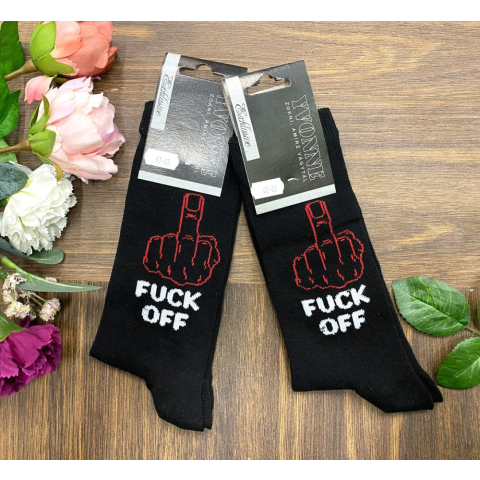 Vicces mintás zokni FUCK OFF vicces,mintás zokni ,Az Ön egyedi számára készült A termék jellemzői : normál szárú zokni hosszú élettartamú megerősitett orr és sarok kényelmes és rugalmas szár puha , vékony,légáteresztő , jobban felszívja az izzadságot