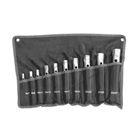 BERGER csőkulcs készlet – 10 részes, 6–27 mm A BERGER csőkulcs készlet 10 részes 6–27 mm egy praktikus és tartós szerszámkészlet, amelyet ipari, műhely- és otthoni feladatokra terveztek. Az ERW csőacél anyagminőség biztosítja a hosszú élettartamot és a megbízható teljesítményt. A készlet szerszámtartó tasakban érkezik, így könnyen tárolható és szállítható. A különböző méretű csőkulcsok széles felhasználási lehetőséget kínálnak, így ide