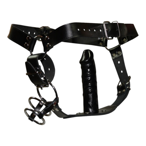 1 kép Zado - bőr tanga dildóval, 3 péniszgyűrűvel