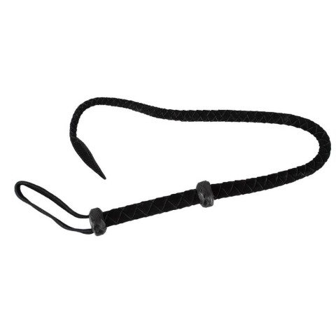 Fedezd fel a fegyelmezés izgalmát ezzel az erős és elegáns, fekete velúrbőrből készült, fonott lófarkas játékszerrel!