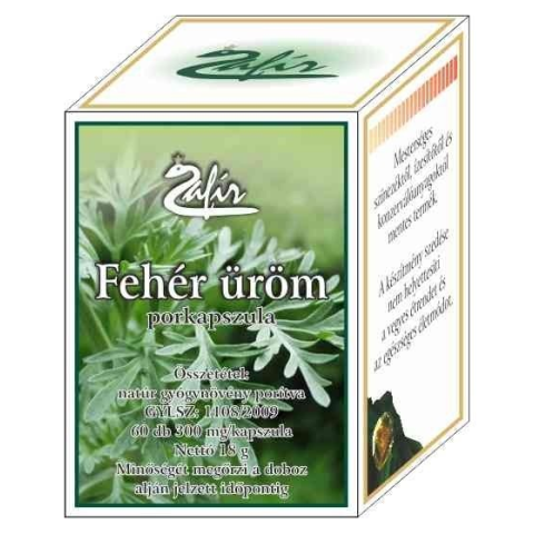 Zafír fehér üröm dr kapszula 60 db A “FEHÉR ÜRÖM DR PORKAPSZULA” kizárólag természetes anyagból, minőségileg gondosan ellenőrzött, (Artemisia absinthium) levéldrogjának felhasználásával készül. A fehér ürmöt (mint a világ állítólag legkeserűbb növényét