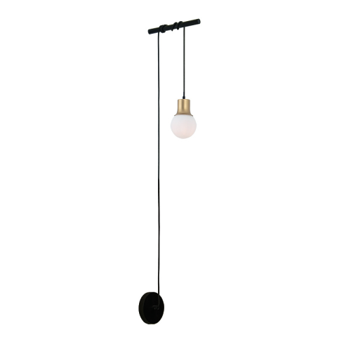 Minimál stílusú fali lámpa, fémből készült arany színű foglalattal, melyen egy opál üveggömb található. A lámpa G9 foglalattal, cserélhető fényforrással került kialakításra...