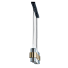 Hengeres formájú, üvegből és fémből készült függesztett lámpa, arany matt árnyékolóval és átlátszó króm üveggel. A lámpa E27 foglalattal, cserélhető fényforrással került kialakításra...