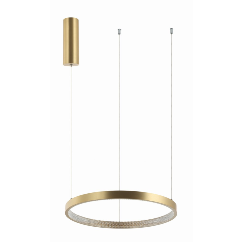 Dekoratív megjelenésű függesztett lámpa, beépített LED fényforrással. Szobába, étkezőbe, irodába kiváló választás. Öt különböző méretben, matt szálcsiszolt arany színben kapható...