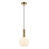 Elegáns stílusú függesztett lámpa, arany színű fém lámpatesttel, és opál üvegbúrával...