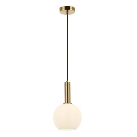 Elegáns stílusú függesztett lámpa, arany színű fém lámpatesttel, és opál üvegbúrával...