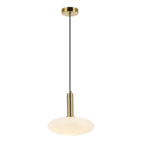 Elegáns stílusú függesztett lámpa, arany színű fém lámpatesttel, és opál üvegbúrával...