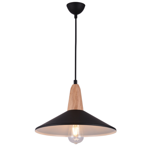 Fából és minőségi alumíniumból készült függesztett lámpa, E27 foglalattal, cserélhető fényforrással...