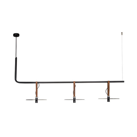 Bőrrel kombinált fémből és alumíniumból készült függesztett lámpa, beépített LED fényforrással, 50.000 óra élettartammal...