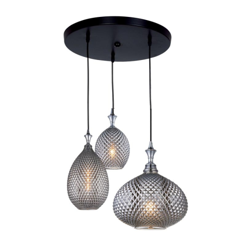 1 kép ZAMBELIS fekete-füstszürke függesztett lámpa (ZAM-19241) 3xE27 3 izzós IP20