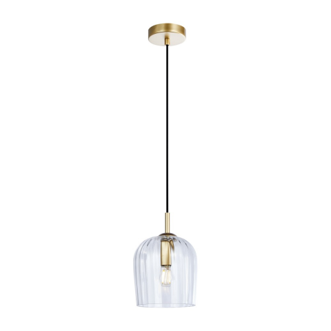 Elegáns függesztett lámpa, fém kerettel és modern dombornyomott kialakítású üveg búrával. A lámpacsaládhoz többféle modell is tartozik, mindegyik lámpa kétféle színű búrával (átlásztó vagy pezsgő színben) kapható. A lámpa E14 foglalattal, cserélhető fényf..