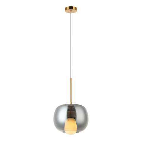 Kifinomult dizájnnal rendelkező mennyezeti lámpa fém lámpatesttel és füstszürke opálüveggel. A lámpa közepén egy G9-es foglalat található...