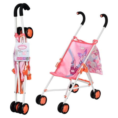 Baby Annabell imád sétálni, és ez a babakocsi éppen alkalmas egy jó sétához. Könnyen vezethető, és ideális városi, parkos vagy rövid utazásokhoz. A hámrendszernek köszönhetően a baba Annabell mindig biztonságosan és stabilan ül benne.Eredeti kiegészítő a
