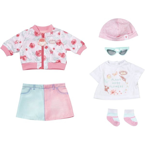 Játékbaba ruha BABY Annabell - kabát, sapka, rövidnadrágok (sortok) és póló, zokni és napszemüveg a csomag része, tavaszra/őszre, baba max. magassága 43 cm, ajánlott 3 éves kortól Mint minden lány, Baby Annabell is egy kis showgirl és másoknak a kedvében akar járni. És milyen lány lenne, ha nem akarna szépen felöltözni? Annabell baba egy gyönyörű új ruhában készül felfedezni a