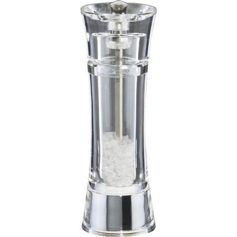 Zassenhaus Aachen 18 cm-es sóőrlő akrilból és rozsdamentes acélból. Az állítható kerámia őrlőszerkezet 6 fokozatú őrlési durvaságot kínál. Az átlátszó kialakítás lehetővé teszi a só mennyiségének egyszerű ellenőrzését. Alkalmas minden konyhába és étkezőbe.