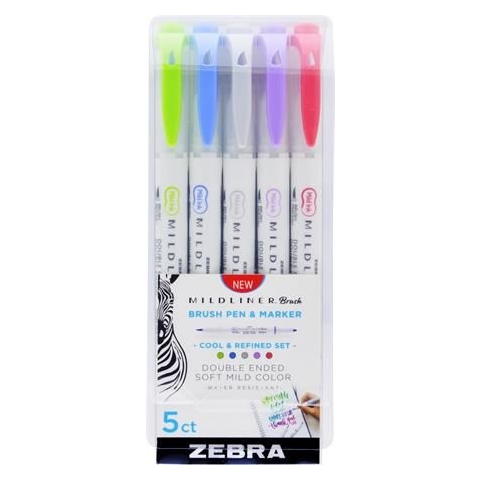 1 kép Zebra Ecsetirón készlet, kétvégű ZEBRA "Mildliner Cool & Refined", 5 szín