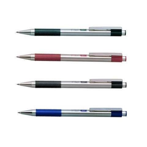 Rozsdamentes acél tolltest a stílus és a tartósság zálogaként. Bordázott markolat a kényelmes és stabíl írásért. Írásszín: kék.