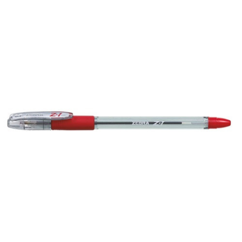 Golyóstoll Zebra Z-1 0.7 mm piros cserélhető betétes golyóstoll átlátszó műanyag test gumírozott markolat alacsony viszkozitású tinta lágy írásmód írásszínnel azonos színű fogórész betét ZA