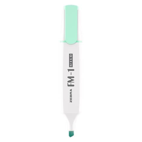 Szövegkiemelő, 3,5 mm, ZEBRA FM-1 Mild, kékeszöld Az FM-1 MILD egy klasszikus kialakítású szövegkiemelő. -7 lágy, pasztell színben -tintája nem üt át a papíron -fénymásolható -ergonomikus kialakítás -ideális diákok számára és irodai munkához -írásvast