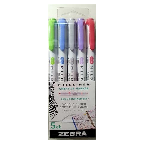 Szövegkiemelő készlet, 1,0/3,5 mm, kétvégű ZEBRA "Mildliner Cool & Refined" 5 szín - TZ78205 - Szövegkiemelők - Kétvégű szövegkiemelő vágott és kerek heggyel. -divatos, fluoreszkáló pasztell színek