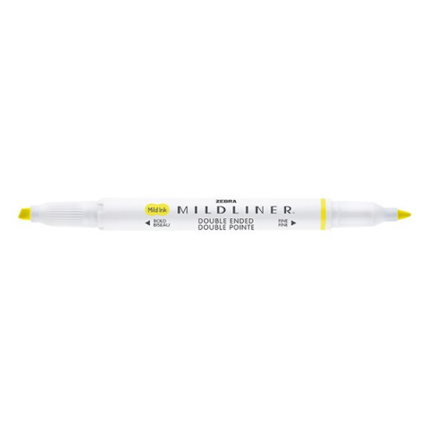 Szövegkiemelő kétvégű ZEBRA Mildliner fluorescent 1,4-4,0 mm sárga Lágy színek, kettős végű kialakítás.Vízálló tinta, mely archiválásra alkalmas, nem fakuló tinta. Diákok számára és kreatív tevékenységekhez. 1,4-4,0 mm hegyvastagság
