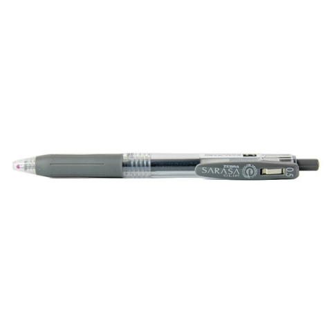 Zseléstoll ZEBRA Sarasa Clip nyomógombos 0,5 mm szürke Nyomógombos, műanyagtestű, cserélhető betétes golyóstoll. Markolata gumírozott, melynek színe megegyezik a tinta színével. Klipsze fém és műanyag ötvözete. Golyóátmérő: 1,00 mm, írásvastagság: 0,27