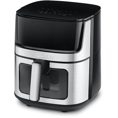 Airfryer - digitális vezérlés, 80 - 200 °C között szabályozható hőmérséklet, tapadásmentes felület, kijelző, fedél nyílással, belső világítás, időzítő, hőmérséklet szabályozás és automatikus programok, 10 program, kivehető edény, 2000 W teljesítmény, 8 l-es edény, edény tapadásmentes felülettel, 1 fritőz kosár, tömege 5,83 kg, méretei 39,5 × 32,5 × 40 cm (ma × szé × mé), rozsdamentes Zelmer ZAF8800 kombinuje objem 8 litrů, výkon 2 000 W a pokroč