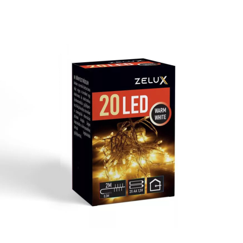 A Zelux termékcsaládot magas minőség és hosszú távú megbízhatóság jellemzi.Varázsoljon meghitt, karácsonyi hangulatot, az alacsony fogyasztású, hosszú élettartamú Zelux karácsonyfa füzéreivel. A 2 méter hosszú füzéren 20 darab LED található, belté