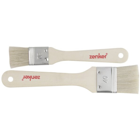Kenőecset - természetes sörtéjű, fa markolat, akasztólyukkal, bézs és ezüst kivitel, mérete 3 × 20 cm (Sz×H), 2 db a csomagban A hasznos ZENKER Kenőecset 2 db konyhai kenőecset főbb előnyei A minőségi ZENKER kenőecset segítségével könnyedén kenheted be a húsokat és a tésztaféléket A fogantyú anyaga fa, a sörtéké pedig termész