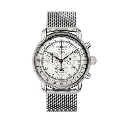 Karóra férfiaknak - analóg idő megjelenítés, óramű típusa quartz, kerek számlap, ébresztőóra, dátum és stopper, repülős, arab indexek, ásványi számlap, 50 m (5 ATM) vízhatlanság, a tok anyaga rozsdamentes acél, a tok színe ezüst, a szíj anyaga rozsdamentes acél, a szíj színe ezüst, 21 cm max. csuklóméretre, cserélhető szíjjal A minőségi Zeppelin 7680M1 férfiaknak karóra jó szolgálatot tesz a mindennapokban. Az alapját egy 42 mm-es kerek számlap alkotja.