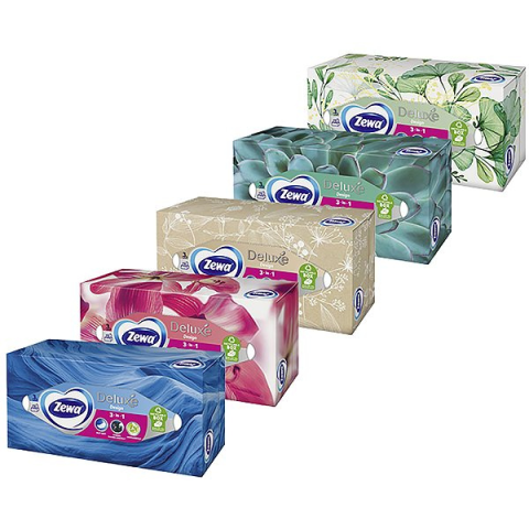 Papírzsebkendő - dobozos, háromrétegű kivitel, illatosított és újrahasznosított, 90 zsebkendő Népszerű papír zsebkendő a ZEWA vezető gyártótól. A családi csomagolásban kilencven darab található. A háromrétegű zsebkendő a legfinomabb papírból készült, ezért páratlan puhasággal