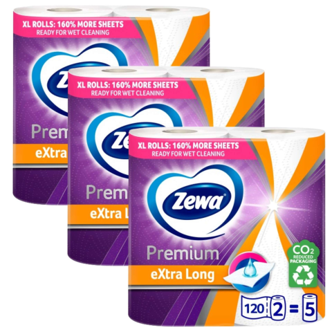 Az új Zewa Premium Extra Long 2 rétegű 2 x 120 lapos erős és kiváló nedvszívó háztartási papírtörlő 50%-kal jobb nedvszívó képességű, mint a korábbi Zewa papírtörlők. Puha, ám egyben vastag, kétrétegű papírból áll, kiemelten hatékony és kiváló nedvszí...
