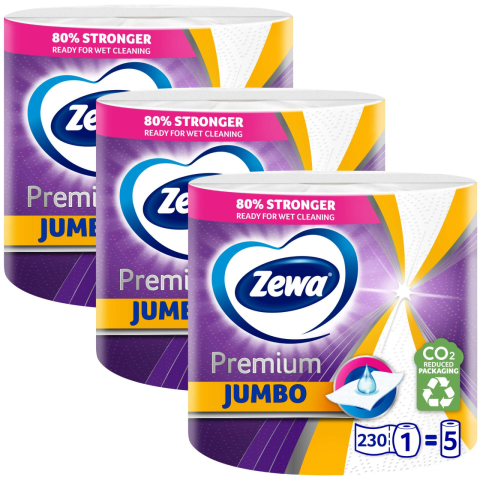 Márka Zewa Szabványosított márka Márka - Zewa Almárka Almárka - Premium Termék információk Az új Zewa Premium Jumbo 3 rétegű 230 lapos erős és kiváló nedvszívó háztartási papírtörlő mérete révén kiemelkedően hosszú ideig praktikus tisztaságot bizto...