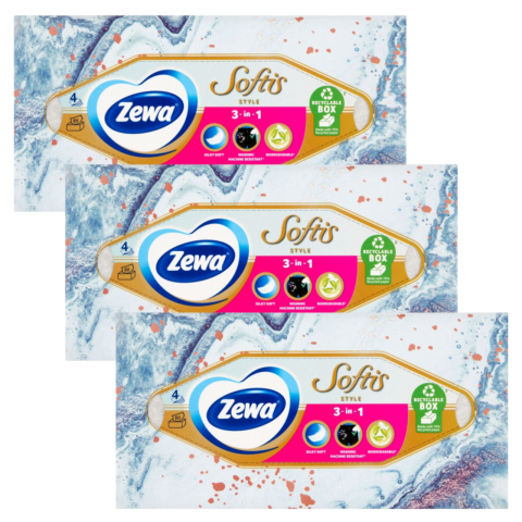 1 kép ZEWA Softis Style 4 rétegű dobozos Papír zsebkendő 3x80db