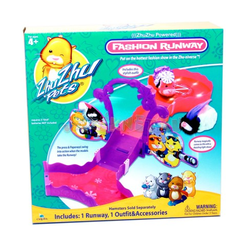 - Itt az ideje a Zhu Zhu Pets divatbemutatónak! A kifutón a hörcsögök díszes ruhákban pompáznak, és a zsűri értékeli a ruhakölteményeket! A készlet működés közben fényeket ad a kifutónak, így még csillogóbb lehet a műsor! A készlet csatlakoztatható bármely Zhu Zhu Pets pályával.