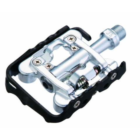 9/16 Cr-Mo tengely.Tömített csapágyazás.Alu test, ezüst.Alu keret, fekete.SPD stoplival együtt.Tömeg: 362g.{Kiszerelés:párStopliszabvány:2 csavarosCsapágyazás:ipari csapágyazásPedálmenet:9/16Pedáltest anyaga:AlumíniumSzín:ezüst-fekete}