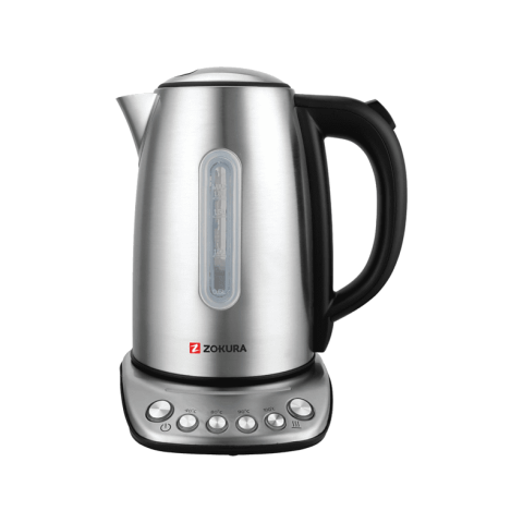 Teljesítmény: 1850-2200W, Anyag: rozsdamentes acél és PP műanyag, Űrtartalom: 1,7 L, Vezeték nélküli elektromos vízforraló különválasztható talppal a könnyű használat érdekében, 360 ° -os elforgatást lehetővé tevő kialakítás, Fogantyún lévő hőmérséklet beállítási funkció: 40-80-90-100 ° C, Biztonsági rendszer: védelem a víz nélküli használat ellen, automatikus külön választás, valamint kikapcsolás, Rejtett fűtőelem, Automatikus kikapcsolási fun