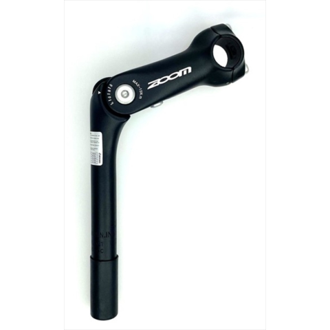 Középméretes állítható kormánybefogó, menetes villákhoz,Átmérő: 22,2mm,Szárhossz: 180mm,Túlnyúlás: 110mm, -10-+50 fok,forgácsolt alumínium,Szín: fekete, fehér ZOOM logóval