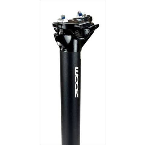 Kerékpár nyeregcső alumíniumDupla csavaros nyeregrögzítésSúly: 307g.Átmérő: 27,2 mm.Hossz: 400mm.Szín: fekete, fehér ZOOM logóval