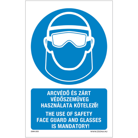 1 kép Zsona Arcvédő és zárt védőszemüveg használata kötelező Műanyag tábla 250x160 mm