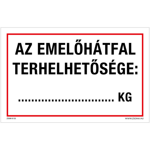 ZSONA DEKOR Az emelőhátfal terhelhetősége Alumínium tábla 160x250 mm információs címke 1 kép