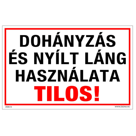 ZSONA DEKOR Dohányzás és nyílt láng használata tilos! Öntapadós matrica 160x100 mm információs címke 1 kép