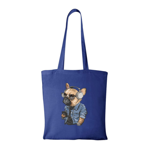 1 kép ZSONA DEKOR Francia bulldog zenét hallgat - Bevásárló táska kék