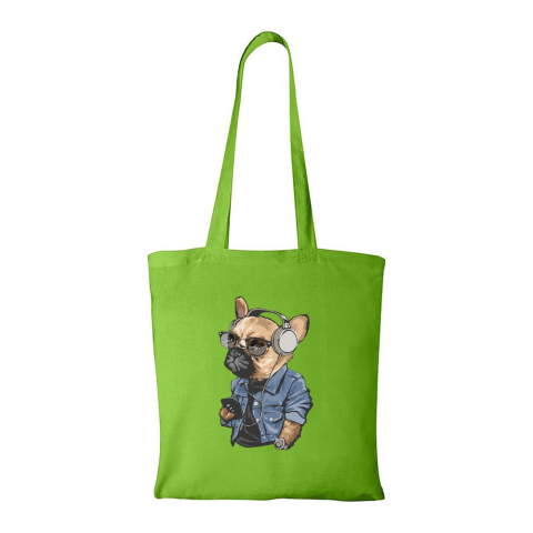 1 kép ZSONA DEKOR Francia bulldog zenét hallgat - Bevásárló táska zöld