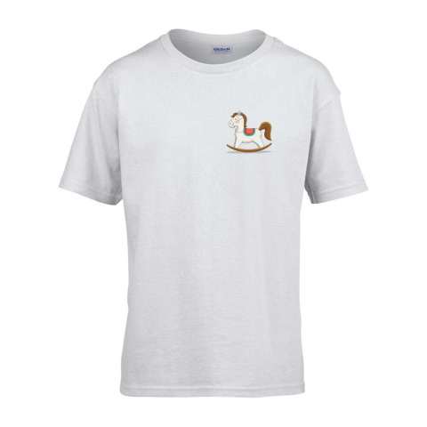 1 kép ZSONA DEKOR Gyerek póló Ovis jelel Hintaló mintával Fehér 110 méret