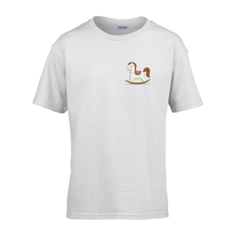 1 kép ZSONA DEKOR Gyerek póló Ovis jelel Hintaló mintával Fehér 146 méret